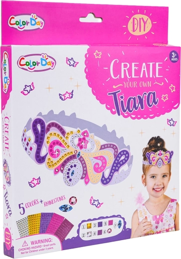 Set creativ pentru copii de la 3 ani, cu care își pot realiza ușor propria coroană de prințesă. Pachetul conține tot ce este necesar – o tiară din carton, autocolante și pietricele sclipitoare. Copiii își dezvoltă în timpul decorării motricitatea fină, coordonarea mână–ochi și gândirea creativă. Coroana are reglaj al circumferinței în două trepte pentru purtare confortabilă.
