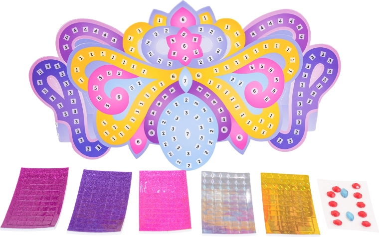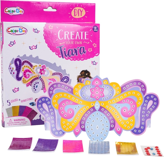 Transformați fiecare joacă într-o sărbătoare regală. Cu acest set, copiii își vor crea o tiară unică după propriul gust – trebuie doar să lipească autocolantele conform numerelor și să o împodobească cu pietricele. Ideal ca cadou pentru o mică prințesă sau pentru o după-amiază creativă.