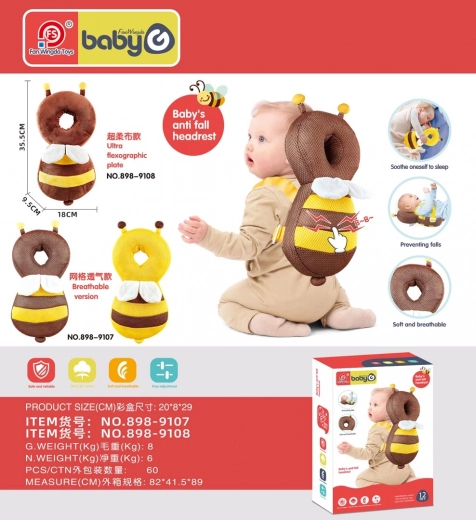 Descoperiți un ajutor practic pentru perioada învățării mersului. Această periniță de protecție în formă de albinuță atenuează căzăturile și ajută la protejarea capului copilului împotriva loviturilor. Datorită greutății reduse și designului ergonomic, nu limitează mișcarea, iar copilul o poate purta ușor ca pe un mic rucsac.