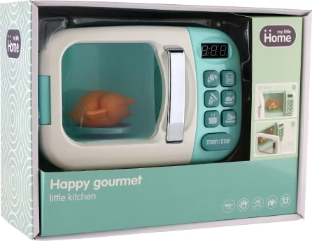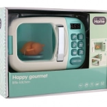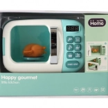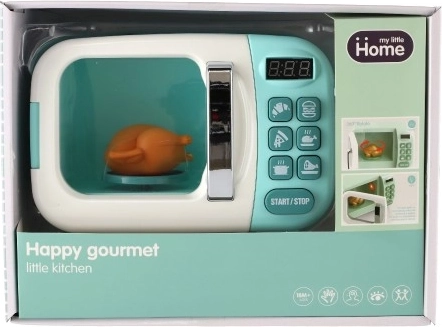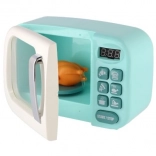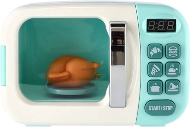 Cuptorul cu microunde simulează funcții reale cu efecte sonore și luminoase realiste și un pui rotativ.