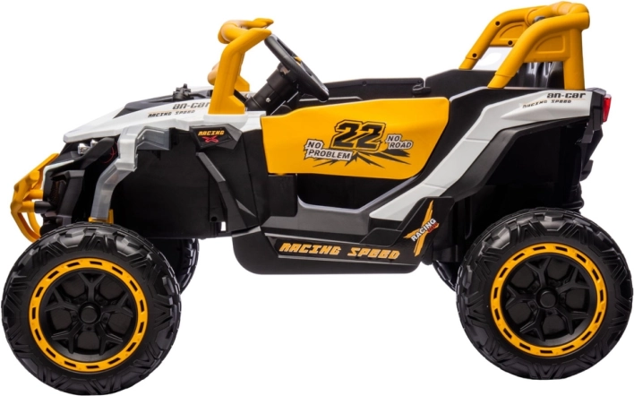 Mașinuța off‑road pentru copii 4x4 combină designul atractiv de teren accidentat cu funcții practice pentru joaca zilnică în aer liber. Anvelopele masive, barele de protecție și scaunele confortabile creează o senzație autentică la condus, în timp ce controlul simplu este adaptat copiilor.
