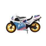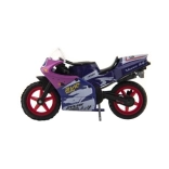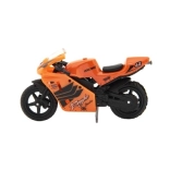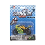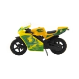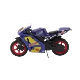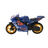 Modelul motocicletei de curse măsoară 8 cm și este realizat dintr-o combinație de metal și plastic. Groza pentru copii de 3 ani și peste, stimulează jocul creativ și imaginativ. Motocicleta este ambalată pe card și este disponibilă în mai multe variante de culori.