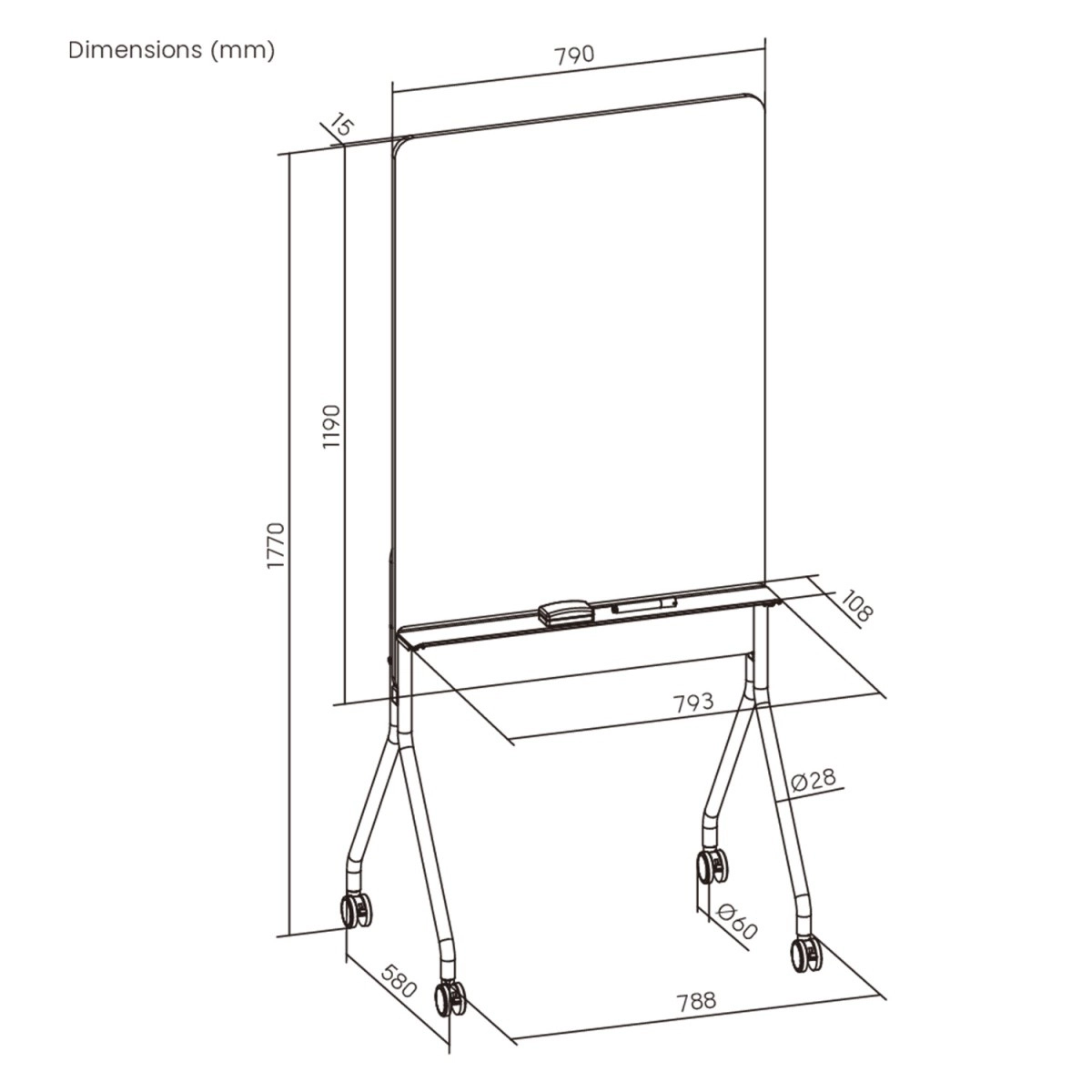 Dimensiunea de 119 × 79 cm, cu orientare pe verticală, oferă suficient spațiu pentru notițe, schițe și sarcini, fără a ocupa mult loc în încăpere. Polița integrată păstrează markerele și buretele mereu la îndemână.