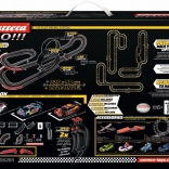 Pista se asamblează ușor cu sistemul de cleme și este stabilizată de suporturi reglabile pe înălțime. Contorul mecanic de ture păstrează evidența rezultatelor, iar caroserii imprimate detaliat cu licențe precum Ferrari și Red Bull încântă orice fan al sporturilor cu motor.