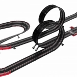 Circuitul de 8,9 m oferă looping, viraje înclinate și perete vertical pentru treceri spectaculoase și viteză ridicată.