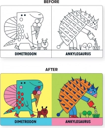 - 6 pagini cu ilustrații – dinozauri drăgălași pentru distracția zilnică în cadă