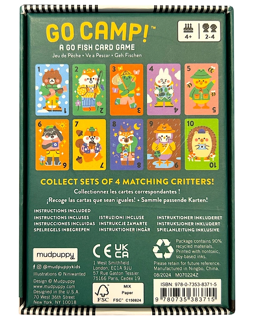 Descoperă distracția cu tematică de camping cu jocul de cărți Mudpuppy Hai la camping. Datorită regulilor simple și ilustrațiilor frumoase, va fi pe placul copiilor și adulților. Jocul este compact, așa că se potrivește perfect în rucsac pentru excursii sau pentru zile ploioase acasă.