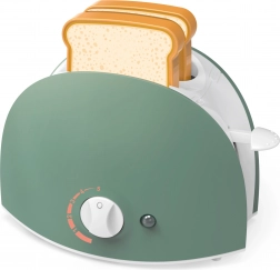 Prăjitorul este sigur pentru mâinile copiilor și, datorită dimensiunilor compacte de 10 × 5 × 13 cm, încape în orice bucătărie pentru copii. Alimentarea este asigurată de 2× baterii AA (nu sunt incluse în pachet), așadar este suficient să introduceți bateriile și joaca poate începe.