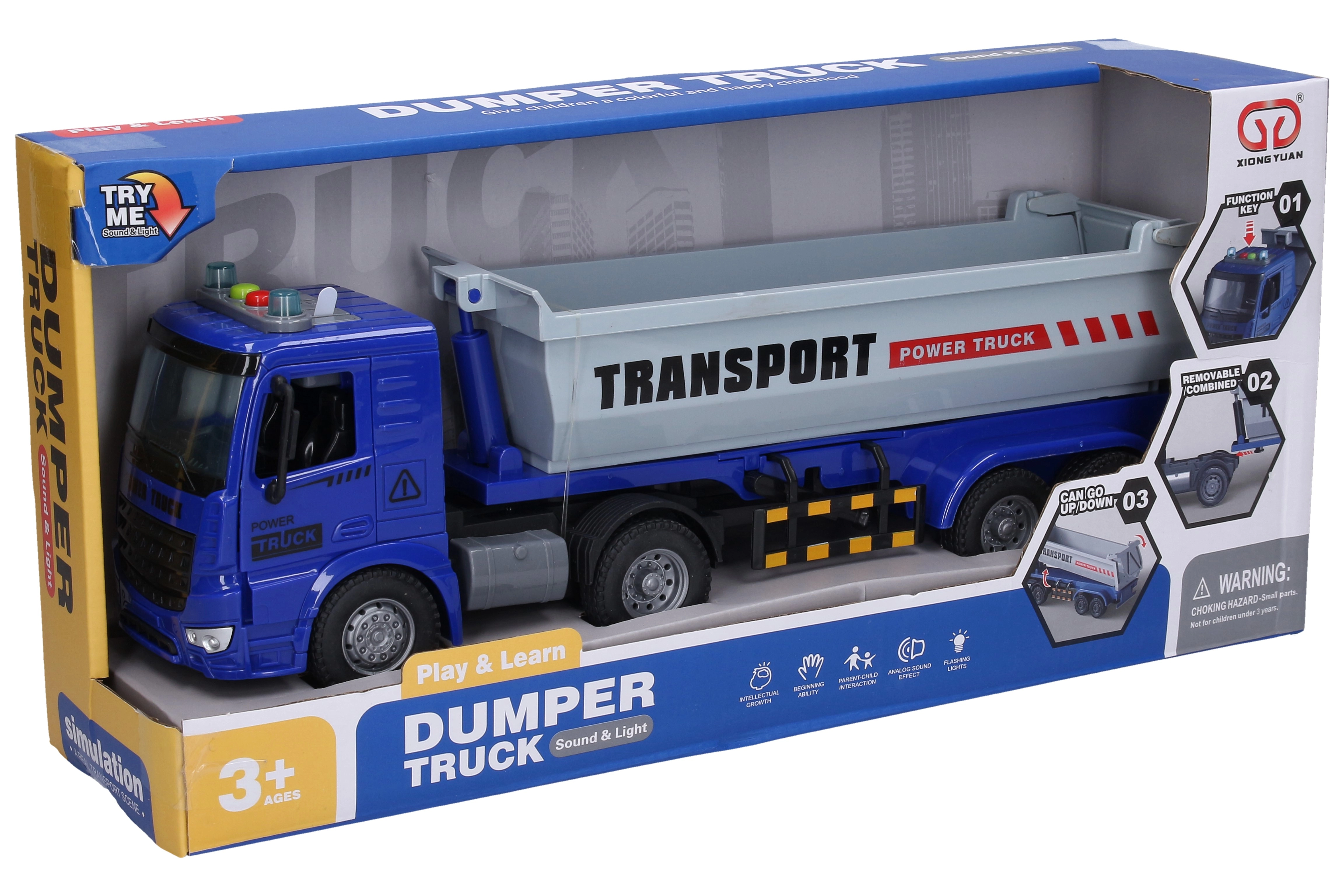 Autotractorul realist cu benă basculantă îi va încânta pe micii șoferi și pe colecționari. Oferă efecte luminoase și sonore, mecanism cu inerție pentru o rulare lină și uși care se deschid. Datorită semiremorcii detașabile și benei basculante funcționale, copiii se vor bucura de multă distracție și își vor dezvolta imaginația în timpul jocului.