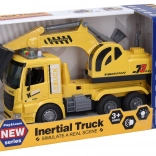 Acest excavator de construcții, redat în detaliu și cu o lungime de 28 cm, este o jucărie ideală pentru toți micii fani ai utilajelor de șantier. Mecanismul cu inerție asigură o deplasare lină, iar butoanele de pe acoperiș activează sunete realiste de motor, săpare, mers înapoi și claxon, însoțite de efecte luminoase.