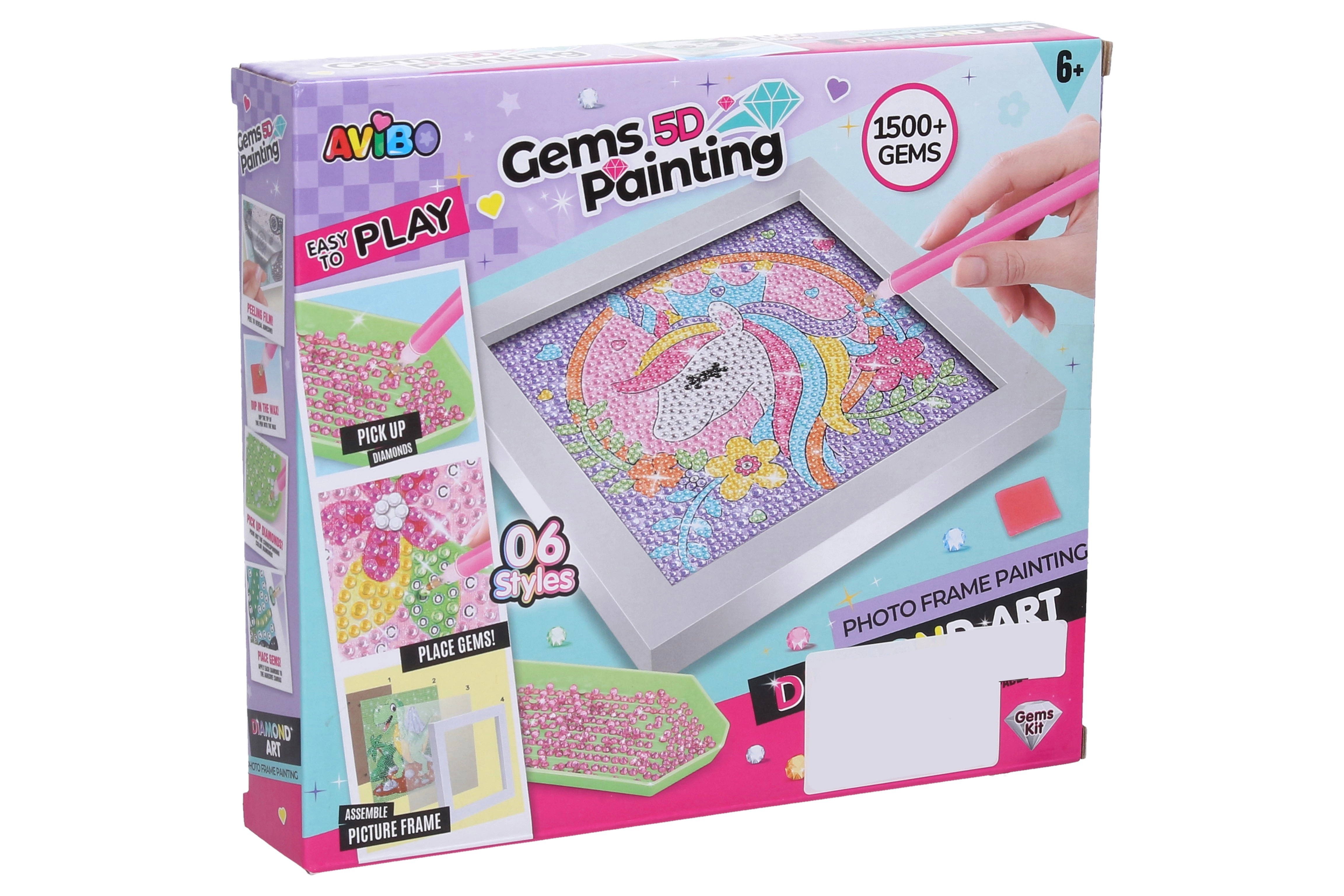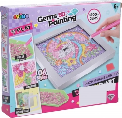 Pașii sunt simpli: dezlipiți folia de protecție de pe șablon, atingeți vârful stiloului inclus în ceară, preluați o mărgea și plasați-o în locul corespunzător de pe tablou. La final, introduceți imaginea în rama inclusă și expuneți-vă propria operă de artă sclipitoare.