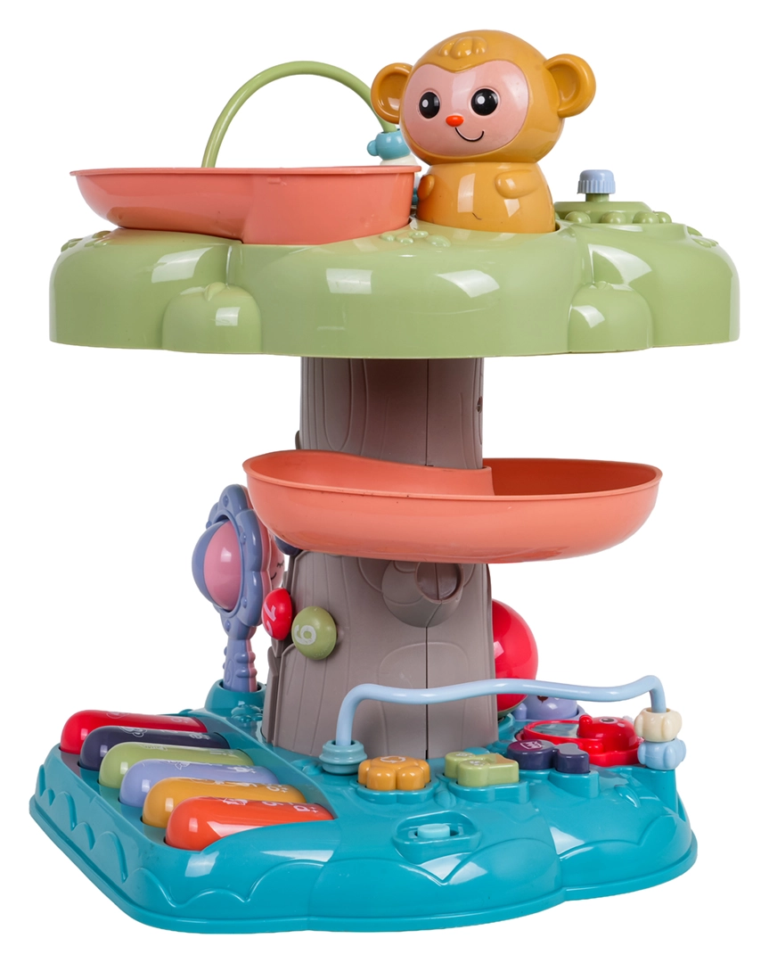 Nu lipsesc labirintul cu mărgele, rotițele dințate, zornăitoarele detașabile și animăluțele pe șnur pentru potrivirea formelor. Copiii pot apăsa butoane, roti, muta și bate la tobă – fiecare acțiune declanșează un sunet sau o lumină. Jucăria este realizată din plastic rezistent, fără muchii ascuțite, proiectată pentru joacă sigură acasă.