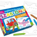 - 16 șabloane, set de creioane colorate, 1 creion, 1 bloc de hârtie, instrucțiuni