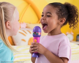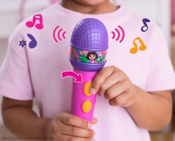 Microfonul cu efecte DORA este alegerea perfectă pentru micii cântăreți și fanii îndrăgitei eroine. Printr-o singură apăsare de buton, copiii pot reda hituri cunoscute precum „We Did It” sau „Todo Juntos”, ori pot asculta fraze vesele, de exemplu „That's banana-riffic!”. Dimensiunea compactă (19,5 cm) se ține excelent în mână și susține creativitatea naturală a copiilor.