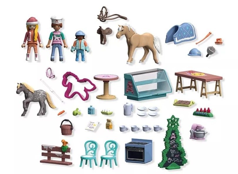 Descoperiți lumea PLAYMOBIL Horses of Waterfall, unde atmosfera de Crăciun se întâlnește cu farmecul vieții ecvestre. În cafeneaua lui Ellie, copiii se bucură de copt turtă dulce și biscuiți, de decorarea interiorului și de servirea bunătăților cu entuziasm. Cuptorul care se deschide și vitrina de sticlă adaugă autenticitate jocului, iar animăluțele de companie și gustările pentru cai subliniază tema grajdului.