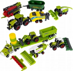 Sunt incluse diferite tipuri de tractoare, combină cu adaptor detașabil, remorci și suprastructuri pentru scenarii de joc variate. Figurinele de animale domestice completează atmosfera realistă și susțin crearea propriilor povești.