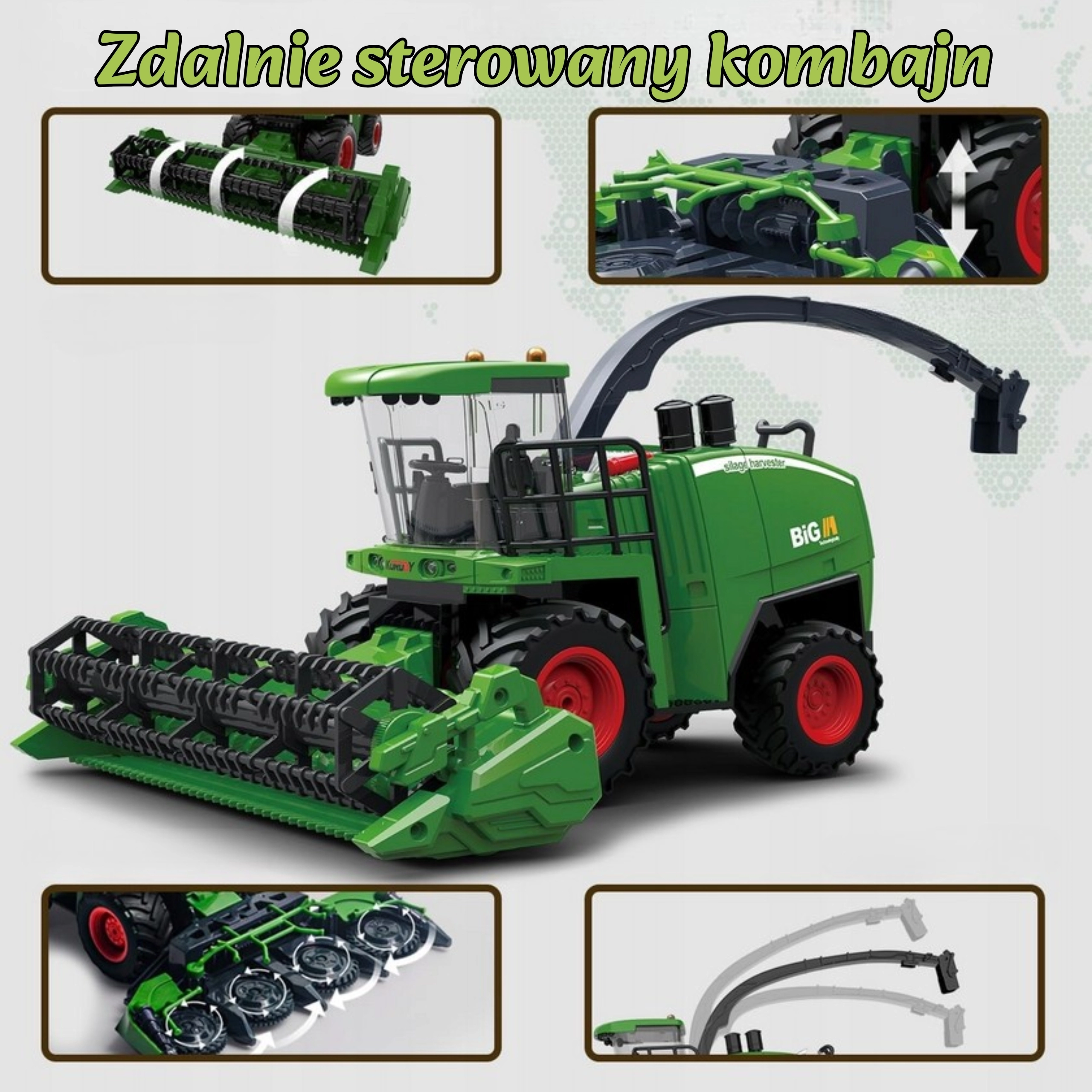 Combină WOOPIE cu telecomandă, scară 1:24 oferă distracție agricolă realistă cu efecte de lumină și sunet, heder rotativ și efect de fum. Datorită controlului înainte/înapoi și stânga/dreapta, razei de acțiune de până la 30 m și autonomiei de 30–40 minute, este o alegere excelentă pentru micii fani ai fermei.
