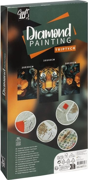 Descoperă farmecul picturii cu diamante și creează un triptic original cu motiv de tigru, care va înviora orice interior. Fiecare pânză este prevăzută cu strat autocolant și legendă tipărită, astfel încât poți așeza pietricelele ușor în locul potrivit. Rezultatul este un tablou luxos și strălucitor, care se evidențiază în living, dormitor sau camera copilului.
