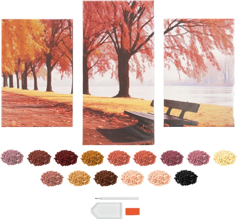Descoperă farmecul Diamond Painting și creează un triptic impresionant cu peisaj, potrivit pentru living, dormitor sau birou. Datorită suportului autoadeziv și legendei clare, tehnica este ușoară chiar și pentru începători, iar rezultatul arată profesionist și luxuriant.