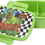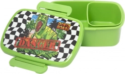 Cutie practică pentru gustare cu motiv dinozauri pentru copii, ideală pentru școală, locul de joacă și excursii. Fabricată din material rezistent, face față cu ușurință utilizării zilnice și căderilor accidentale. Decorul atractiv de pe capac va fi îndrăgit de copii. Potrivită nu doar pentru alimente, ci și pentru depozitarea micilor jucării și a micilor comori.