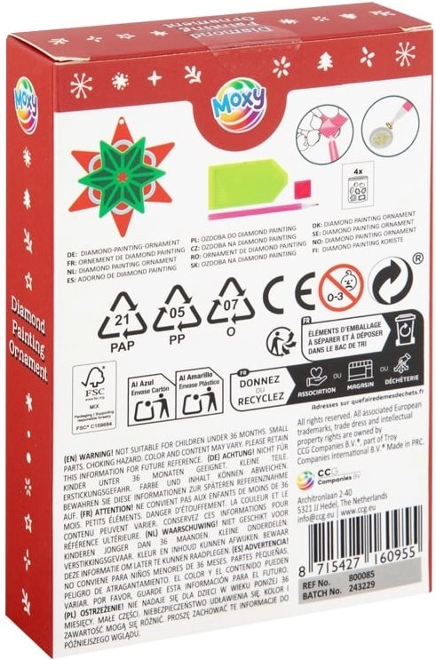 Creează-ți propria decorațiune strălucitoare de Crăciun cu setul creativ MOXY. Tehnica simplă a picturii cu diamante cu model numeric este ușoară pentru copii și adulți, susține creativitatea și motricitatea fină, iar rezultatul este o stea strălucitoare care va împodobi bradul, coronița sau interiorul casei.