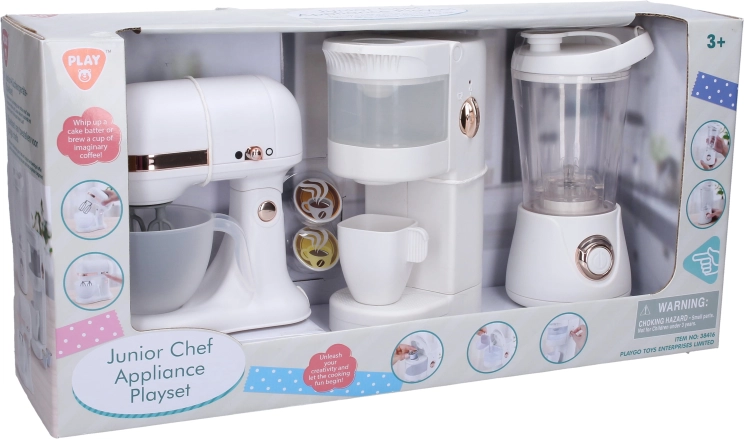 Acest set 3 în 1 de la PLAYGO este ideal pentru micii bucătari. Copiii se vor bucura să „prepare cafea” cu aparatul dotat cu rezervor real de apă, să amestece băuturi în blender și să bată compoziții cu robotul de bucătărie. Jocul de-a gospodăria dezvoltă motricitatea fină, creativitatea și abilitățile sociale.