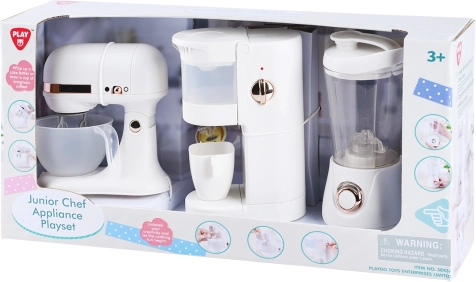 Setul distractiv de electrocasnice de bucătărie pentru copii PLAYGO aduce un joc realist în bucătărie. Include un blender, un aparat de cafea cu rezervor de apă și un robot de bucătărie cu funcții care îi vor încânta pe cei mici și le vor stimula imaginația.