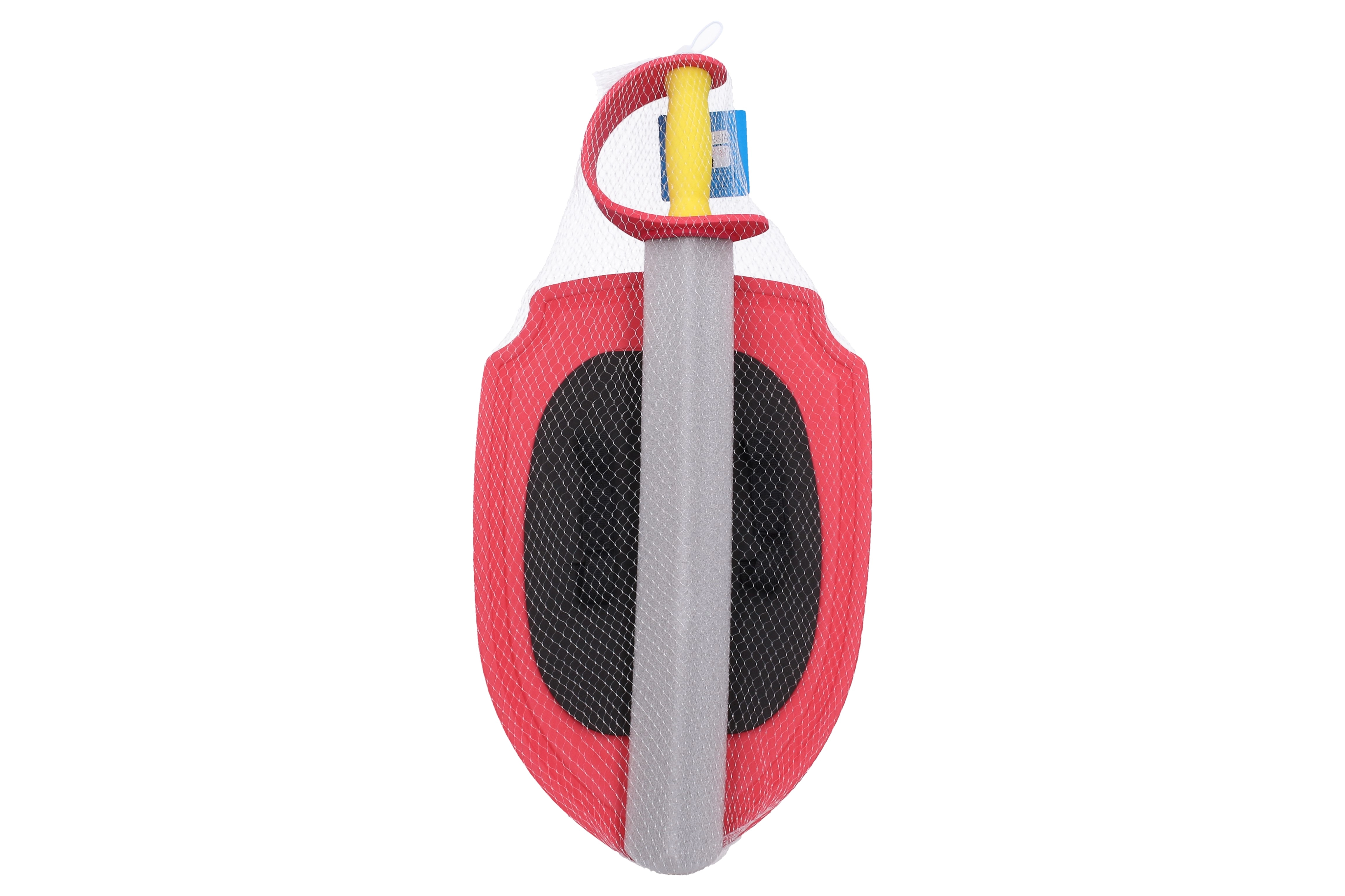 Set distractiv pentru micii cavaleri: sabie și scut din spumă, în culoare roșie, pentru dueluri sigure și joacă creativă. Material ușor, moale și sigur, ideal pentru copii; sabie cu lungimea de 57 cm și scut cu dimensiunile 27,5 × 41,5 cm, perfect adaptate mâinilor copiilor, stimulând imaginația acestora.