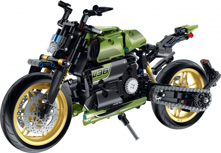 Construiește o motocicletă realistă din 572 piese, cu detalii precise. Modelul oferă un lanț mobil, amortizoare funcționale și dimensiuni de 33,7 × 10,3 × 17,6 cm – o alegere excelentă pentru constructorii creativi și fanii modelelor tehnice.
