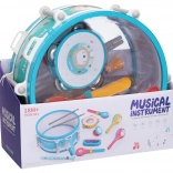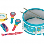 Setul este ideal pentru primele contacte cu muzica – de la bătutul tobei, la clinchetul tamburinei și până la instrumentele de suflat. Combinația practică de instrumente oferă o paletă variată de sunete și stimuli care dezvoltă auzul și coordonarea.