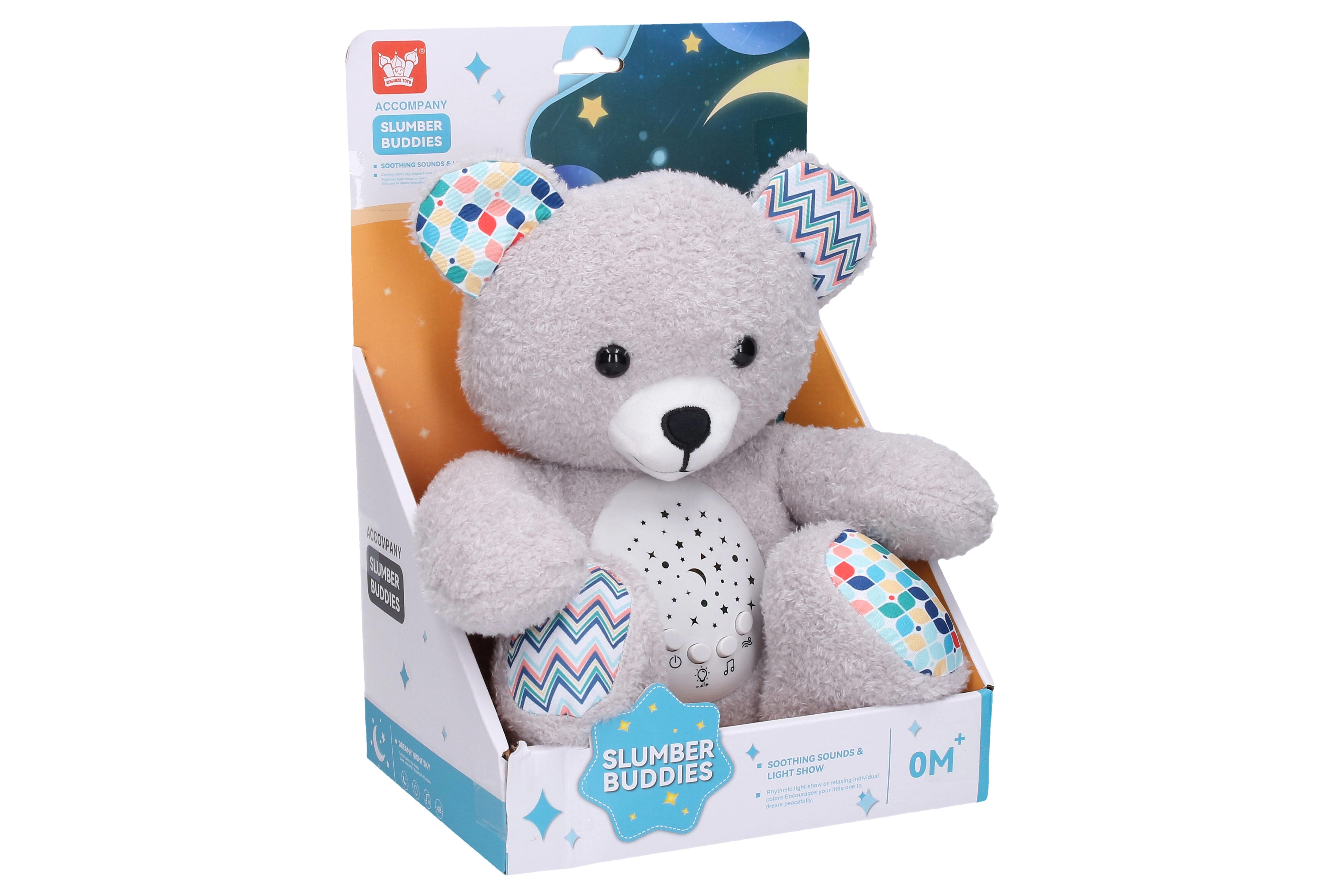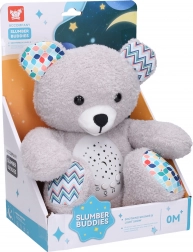 Ursuleț de somn drăgălaș cu proiector detașabil, care îi ajută pe cei mici să adoarmă liniștiți. Oferă proiecție cu intensitate reglabilă, 7 cântece de leagăn și 3 tipuri de zgomot alb cu oprire automată după 30 de minute. Control simplu prin butoanele ON/OFF, lumină, notă și val.