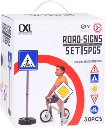 Fiecare semn este compus din bază, tije și conectori, care se montează rapid și ușor. Bazele pot fi umplute cu apă sau nisip pentru stabilitate maximă. Plasticul ușor, dar rezistent, este sigur pentru copii, iar autocolantele colorate sunt foarte lizibile.