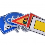 - 5 figurine cu semne rutiere (semafor, trecere pentru pietoni, drum principal, sens giratoriu, pistă pentru biciclete)