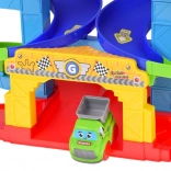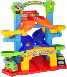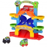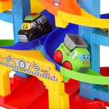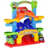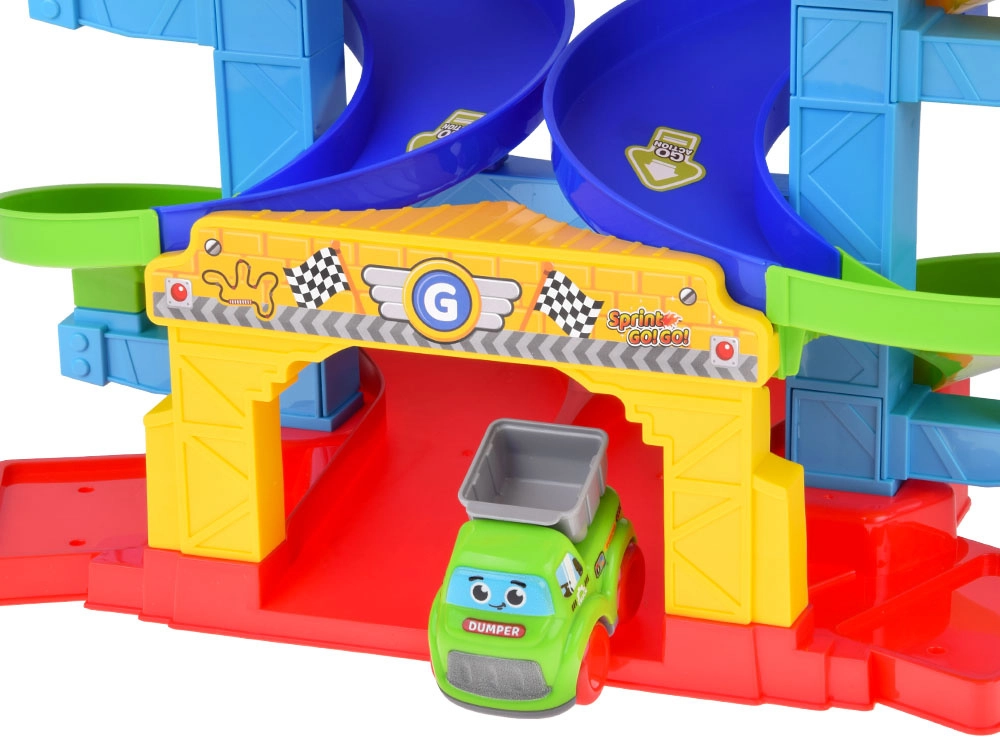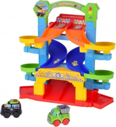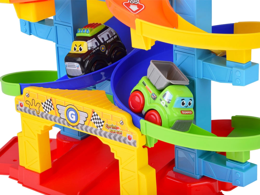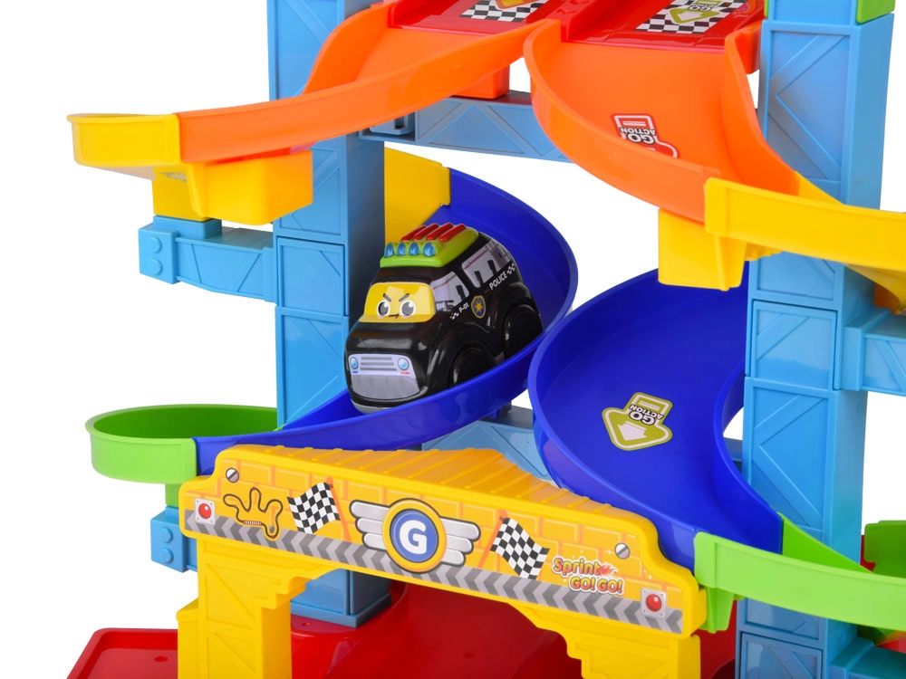 Această pistă auto spiralată este o alegere excelentă pentru primele curse ale micilor șoferi. Traseele spiralate colorate, poarta de start și pilonii stabili asigură o rulare lină a mașinuțelor de sus până jos. În timpul jocului, copiii își exersează coordonarea mână–ochi, își dezvoltă logica și imaginația și învață, totodată, principiile cauză–efect.