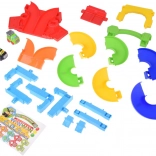 Pista se asamblează și se reconfigurează ușor, permițând schimbarea aranjamentului și a culorilor segmentelor în funcție de preferințe. Materialele de calitate, sigure, și marginile rotunjite sunt adaptate pentru cei mai mici. În pachet găsiți două mașinuțe – vehicul de poliție și basculantă verde, care rulează fiabil pe rampele late.