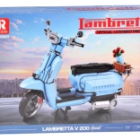Acest model licențiat LAMBRETTA V200 Special aduce farmecul designului italian clasic în colecția ta. Versiunea albastru deschis cu șa neagră, comenzile realiste, oglinzile, farul și suportul posterior cu coș creează o decorațiune impresionantă și un cadou grozav pentru adolescenți și adulți pasionați de istoria motocicletelor.
