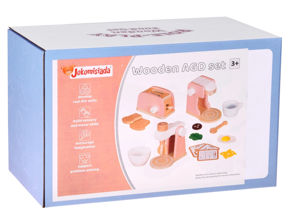 Transformați joaca zilnică în bucătărie într-o experiență realistă. Setul din lemn de electrocasnice oferă tot ce este necesar pentru „mic dejun” – de la prăjitura sărită din toaster, la cafeaua delicioasă și până la bunătăți mixate. Execuția durabilă din lemn, marginile netede și culorile delicate sunt ideale pentru camera copilului.