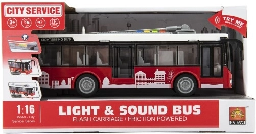 Descoperiți un autobuz urban grozav din colecția City Service, care impresionează prin execuția realistă, designul roșu și controlul facil. Datorită mecanismului cu inerție este suficient să împingeți autobuzul pentru a porni înainte, în timp ce lumina și sunetele oferă jocului o atmosferă autentică de transport urban.