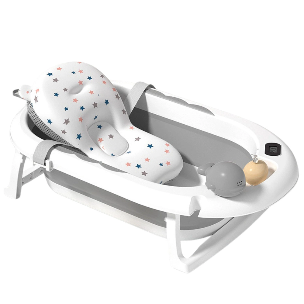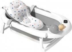 Cădiță practică și sigură pentru bebeluși, care ușurează fiecare baie. Datorită termometrului electronic integrat veți avea temperatura apei sub control în timp real. Structura pliabilă economisește spațiu, picioarele antiderapante asigură stabilitate, iar suportul moale din spumă oferă sprijin confortabil chiar și celor mai mici copii.