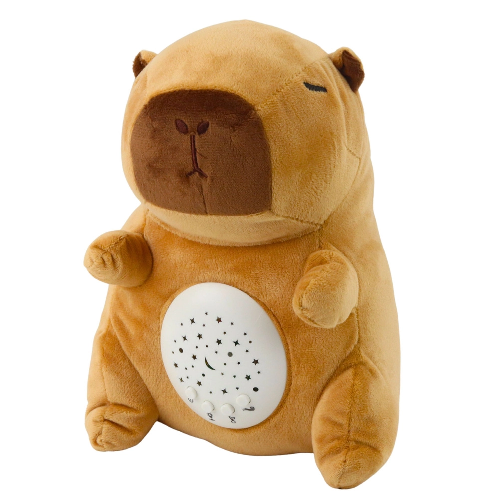 Drăgălașa capibară de pluș cu proiector integrat de stele este însoțitorul ideal pentru un somn liniștit. Funcționează ca jucărie de pluș, veioză de noapte și player de sunete într-unul. Oferă proiecția cerului nopții pe tavan și pereți, 3 niveluri de luminozitate, 8 cântece de leagăn și sunete liniștitoare din natură (vuietul valurilor, zgomot alb), care ajută copiii să se simtă în siguranță pe timp de noapte.