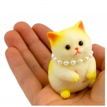 Pisicuța alb‑galbenă cu colier de perle și ochi strălucitori încântă atât ca jucărie, cât și ca decorațiune stilată.