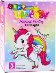 - lampă LED cu telecomandă, figurină unicorn, autocolante diamant, accesorii pentru decorare, instrucțiuni de utilizare