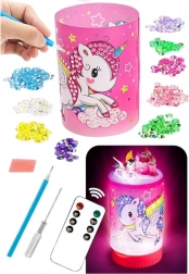 Lampa de noapte LED cu motiv unicorn îmbină iluminare delicată în culori și distracție creativă într-un singur produs. Datorită telecomenzii schimbi ușor modurile de iluminare, iar autocolantele cu diamante le permit copiilor să decoreze lampa în mod original. Creează o atmosferă plăcută pentru adormit și, în același timp, dezvoltă motricitatea fină și creativitatea.
