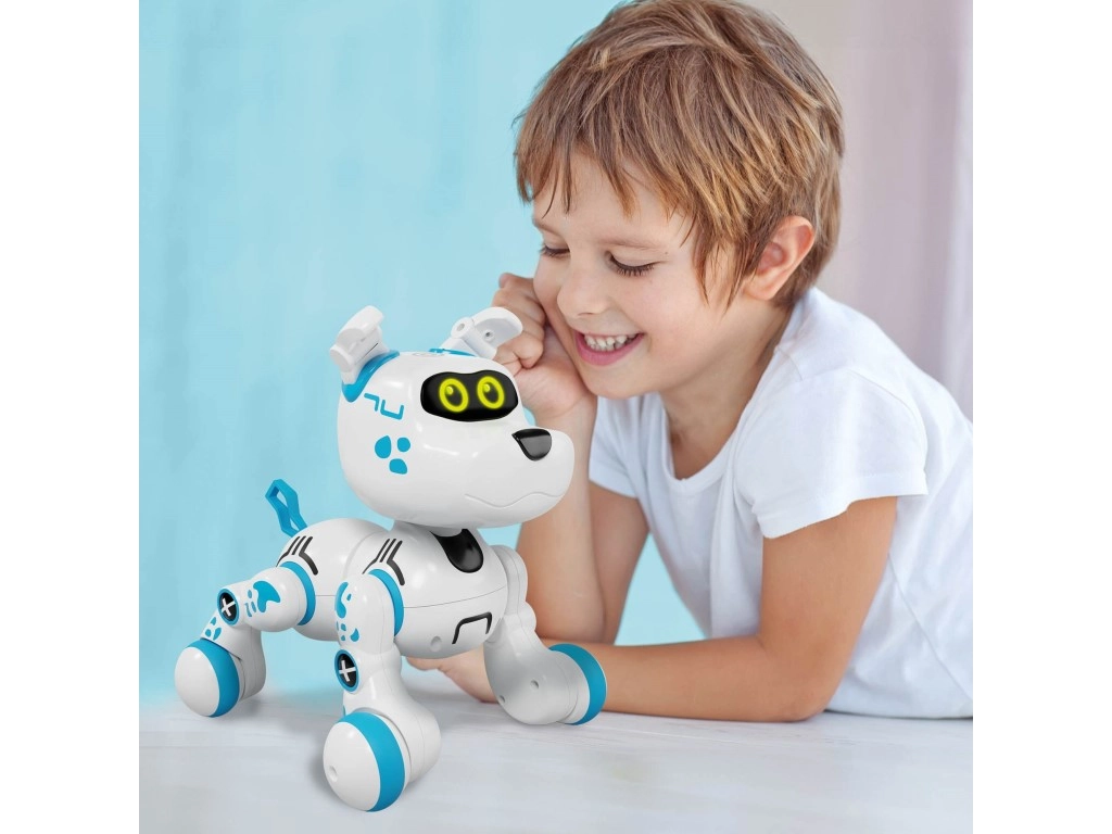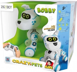 Drăgălașul animal robotic de companie Zigybot Bobby oferă copiilor ore de distracție și învățare. Poate reacționa la atingere, scoate sunete de câine, dă din coadă, se învârte în cerc și știe să stea jos. Poate fi controlat cu telecomandă sau programând mișcări, astfel încât copiii își pot crea cu ușurință propriul cățeluș ascultător – fără mizerie și griji.