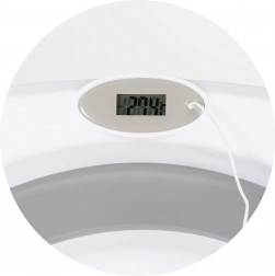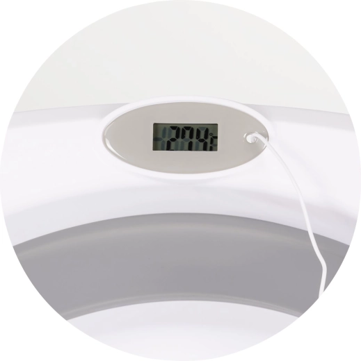 Termometrul digital integrat permite verificarea rapidă a temperaturii ideale pentru pielea sensibilă a copilului.