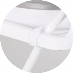 Cădița și stativul se pliază în câteva clipe la dimensiuni compacte – ideal pentru băi mici și pentru călătorii.