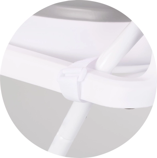 Stativul metalic în X ridică cădița la o înălțime ergonomică, crește stabilitatea și protejează spatele părinților.