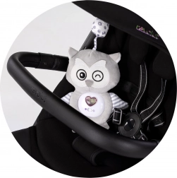Datorită buclei practice, bufnița se atașează rapid de mânerul căruciorului sau de marginea pătuțului – mereu la îndemână.