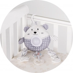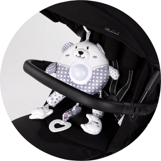 Ursulețul de pluș Big Bear este o jucărie suspendată delicată și sigură, care distrează bebelușul în timpul plimbărilor și al odihnei în pătuț. Melodiile variate și efectele luminoase blânde susțin dezvoltarea simțurilor și ajută la crearea unei atmosfere calme.