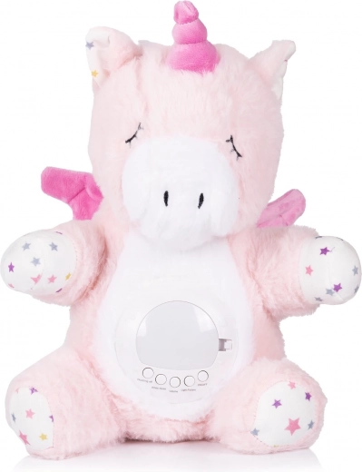 Unicornul din pluș CHIPOLINO este un companion moale pentru pătuț, care liniștește copilul cu lumină delicată și sunete naturale. Datorită combinației de proiecție a cerului înstelat, veioză de noapte și cântece de leagăn, creează o atmosferă plăcută pentru un somn neîntrerupt.